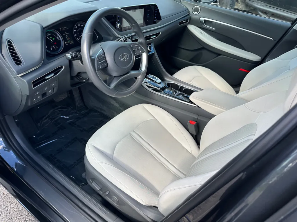New Price! Portofino Gray 2023 Hyundai Sonata Hybrid ***1-OWNER***, ***REAR BACK UP CAMERA***, ** CLEAN CARFAX**, $$ NICE SERVICE HISTORY $$, $$ FACTORY REMOTE START $$, HAIL DAMAGE, 17 x 7.0J Aluminum Alloy Wheels, Apple CarPlay & Android Auto, Emergency communication system: Blue Link Connected Car Service (3-year complimentary subscription), Heated door mirrors, Heated Front Bucket Seats, Lane Departure Warning System, Navigation System, Radio: AM/FM/SiriusXM/MP3 w/Navigation